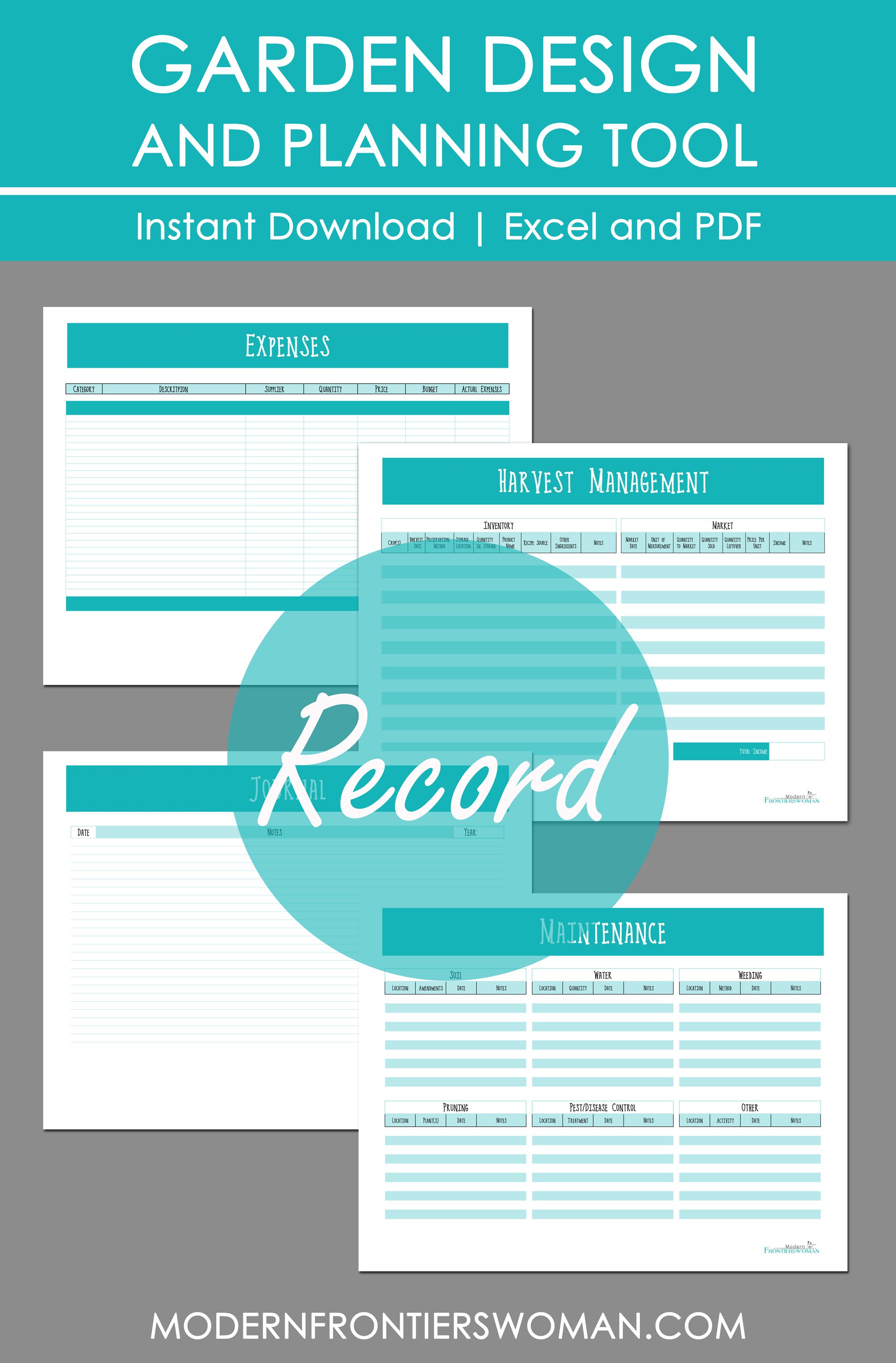 - Record keeping logs for garden tracking, starting seeds, harvesting, soil amendments, plant research, food preservation, inventory, and expenses.